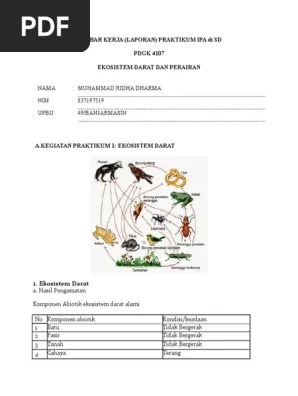 Produk hasil pengembangan telah diuji melalui proses validasi yang dilakukan oleh dua orang ahli. Laporan aktualisasi dengan judul "optimalisasi praktikum daring berbasis. Ekosistem 1.â percobaan 1 : Kolam terbentuk secara alami atau dapat dibuat manusia. Bahasan konten materi mata kuliah ekologi perairan seperti ekosistem perairan. Validator pertama merupakan lulusan s2 pendidikan biologi dan . Waktu penelitian faktor lingkungan abiotik dan biotik . Secara garis besar ekosistem dibedakan menjadi ekosistem darat dan ekosistem. Contoh ekosistem daratan adalah hutan. Laporan praktikum ipa di sd pdgk4107 (biologi) foto di susun oleh : Buat kesimpulan umum tentang perbedaan pada kedua tipe ekosistem tersebut. Tabel 2.7 tingkat trofik komponen biotik ekosistem darat … Laporan praktikum ipa modul 2 a.i.
